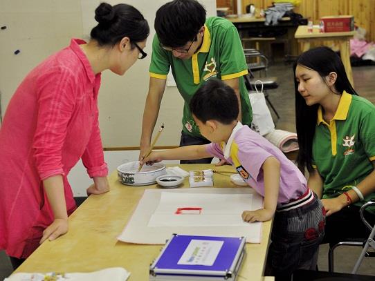 一个小时后,10名参加活动的小朋友在家长以及志愿者的带领下来到了活动现场。小朋友们就坐后,本次活动的指导老师周隽首先为大家讲解了国画的基本知识和用笔技法,并做了示范。只见周老师寥寥数笔,一串鲜红的荔枝就栩栩如生地出现在纸上。周老师说夏天的荔枝代表了家人对孩子的爱,她希望小朋友们用手中的画笔描绘生活中充满爱的形象。