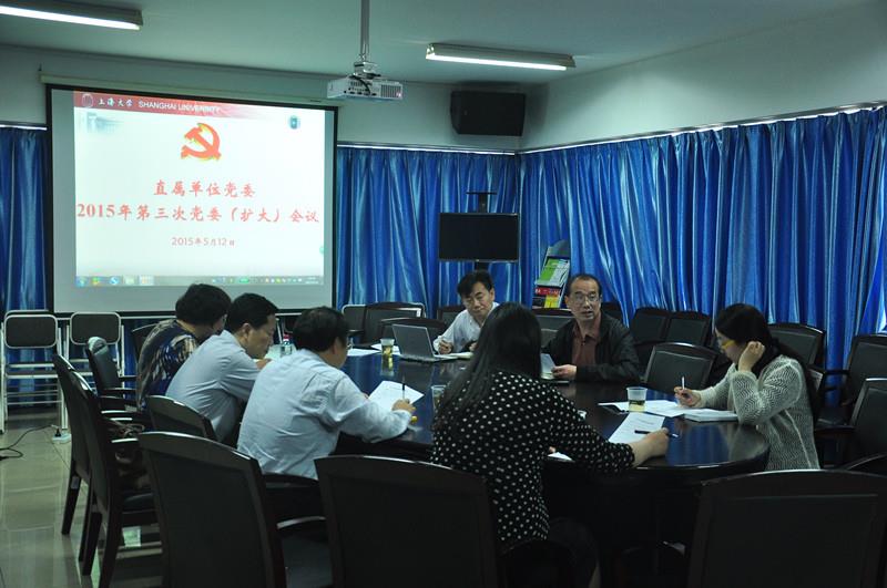 5月12日下午,直属单位党委在校本部D楼直属单位教工之家召开2015年第三次党委(扩大)会议,讨论近期工作。会议由直属单位党委书记陈志宏主持,直属单位党委委员及所属单位负责同志参加了会议。