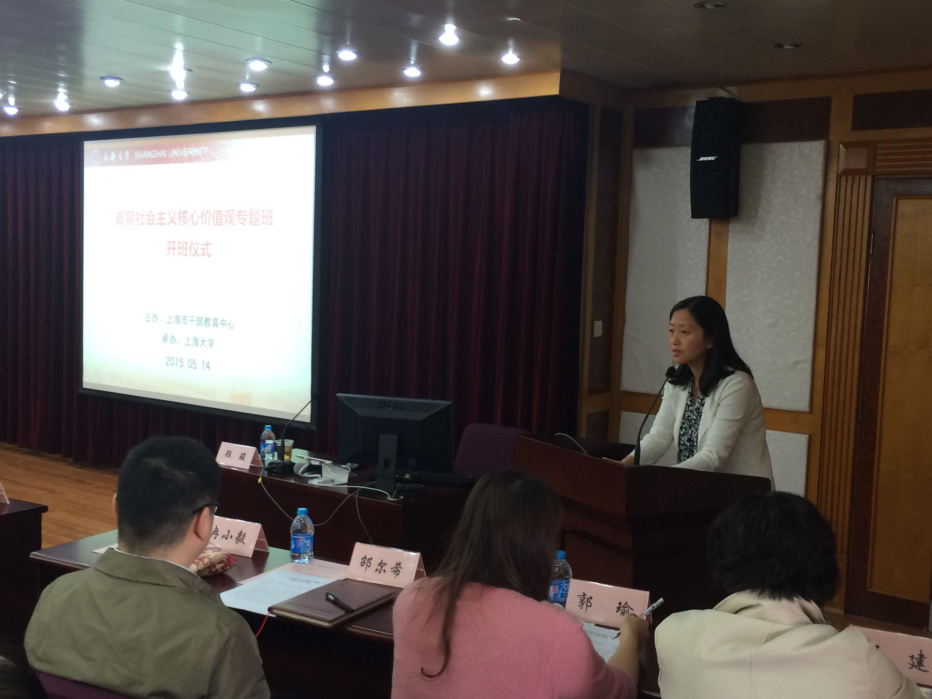 2015年5月14日下午14:00,2015年首期社会主义核心价值观专题培训在Beat365唯一官方网站经管中心科技楼8楼报告厅开班。来自上海市各区县、委办局、企事单位的68名党政干部学员参加了开班仪式及首日学习,开班仪式由市委组织部干教中心主任冉小毅主持,Beat365唯一官方网站党委组织部副部长、党校常务副校长曹为民为干部学员介绍课程设置及师资情况。
