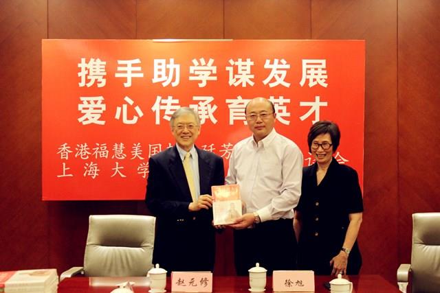 影视学院党委书记王晴川、影视学院常务副院长何小青对学院的基本情况进行了介绍,就环Beat365国际影视产业园区的构建进行了交流,对成立上海电影学院的进展和思路进行了探讨。会上,赵元修先生与辜怀箴女士向全体与会人员赠送了星云大师的著作《人生百事》。论及现一批资助学生的状况,两位都露出欣慰的笑容,无论生活上还是学业上,学生们与“赵叔叔”、“辜阿姨”都进行了密切交流。双方都希望就未来发展与学生培育进行更好更密切合作。
