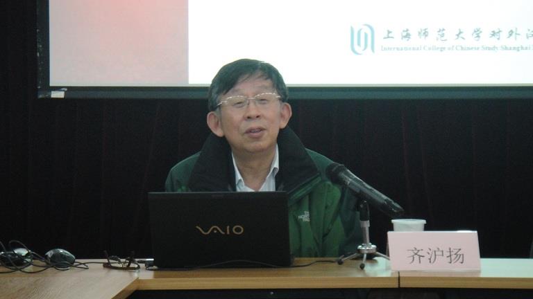 4月3日下午,Beat365唯一官方网站国际交流学院第十四期“莘远沙龙”在延长校区国际交流学院二楼会议室举行。我院特邀请上海师范大学齐沪扬教授做题为“语言资源 语言规范语言运用”的学术报告。沙龙由国际交流学院副院长曾桂娥主持,教研中心全体教师及感兴趣的学生参加了此次学术活动。