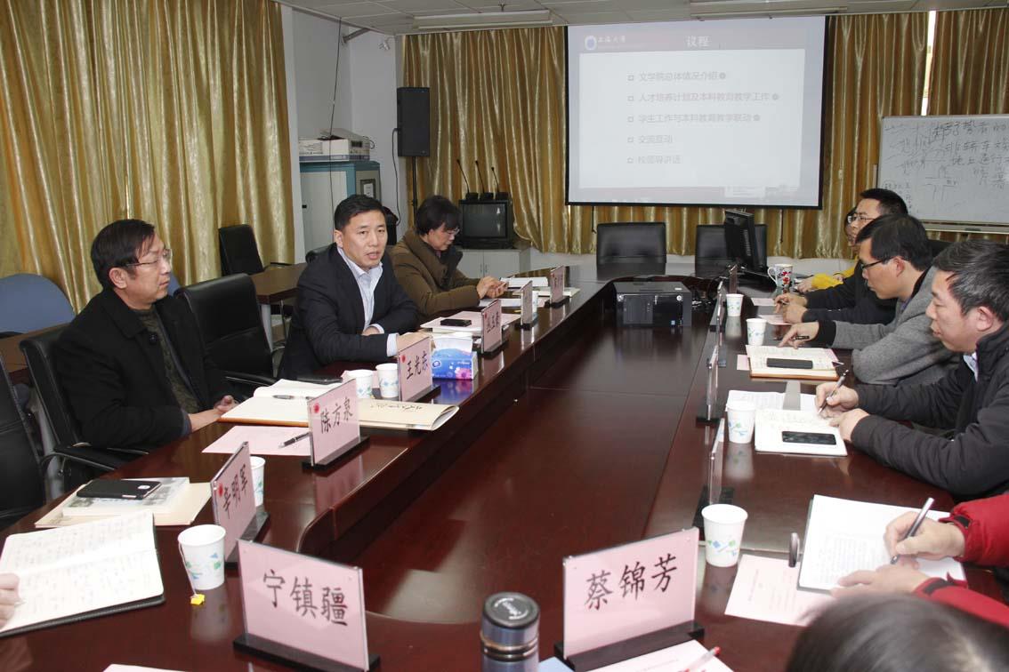 Beat365唯一官方网站党委常委、副校长丛玉豪在百忙之中,于2月3日中午率教务处处长王光东、常务副处长陈方泉、招毕办主任叶红、考评办主任辛明军等赴文学院对本科教学和人才培养等进行调研。文学院党委书记竺剑、常务副院长张勇安、教学副院长曾军、系主任和分管教学系主任等相关人员出席了本次调研会。