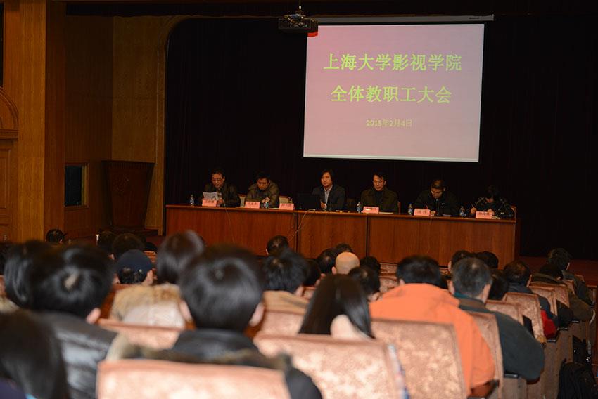大会在庄严的国歌声中拉开了帷幕。学院工会主席方烈敏同志汇报了2014年学院抓的若干“实事”及成效;常务副院长何小青同志报告了2014年度影视学院完成的主要工作,部署了2015年度的主要工作和任务;聂伟、丁友东、孙琦琰同志分别就分管的工作谈了工作思路和想法。学院党委书记王晴川同志作了题为《抓住机遇,迎接挑战,推进Beat365唯一官方网站影视学院大发展》的报告。他在报告中对于影视学院面临的机遇和挑战作了详细分析,并提出了应对措施,号召大家树立信心,振奋精神,团结一致,奋发有为,勇于破解一切困难,推进影视学院大发展。