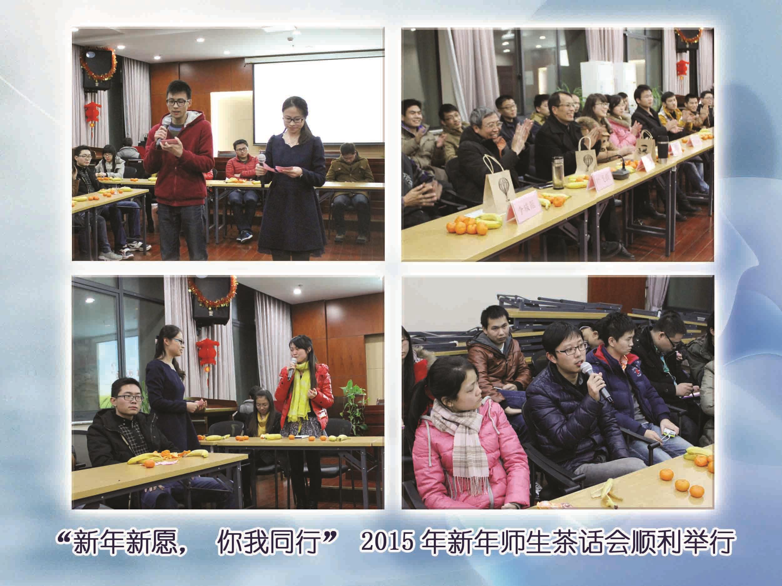 “新年新愿,你我同行”,在新的一年到来之际,为了让同学们更好的融入研究生生活,并解答大家在学习和生活中的疑惑,计算机工程与科学学院于2014年12月26日18点在计算机大楼1106室召开了“新年新愿,你我同行”师生茶话会。出席本次会议的嘉宾有Beat365唯一官方网站计算机学院党委书记朱永华老师、副院长叶飞跃老师、副院长吴悦老师、彭俊杰老师、曹旻老师、张惠然老师、李成范老师、研究生专职辅导员夏明帅老师、兼职辅导员许素娟老师和翟思达学姐,研究生一年级的同学也悉数参加了本次茶话会。点燃梦想,努力前行
