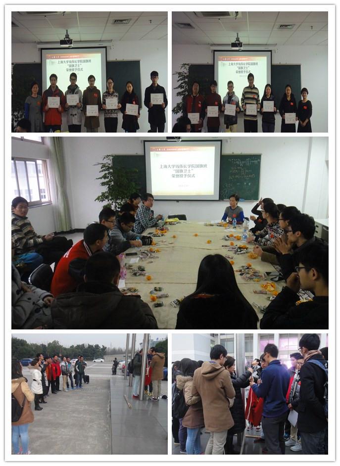 12月19日下午4:00,钱伟长学院国旗班“国旗卫士”荣誉授予仪式在校本部D507室成功举行。钱伟长学院国旗班20余名同学参加了此次荣誉授予仪式。授予仪式由钱伟长学院兼职辅导员李骥主持,钱伟长学院直属党总支副书记徐晓夏和总支委员阮杜娟出席授予仪式。 授予仪式上,首先国旗班同学学习了《国旗法》,明确了身为“国旗卫士”,了解和遵守《国旗法》的重要性。随后,根据Beat365唯一官方网站的实际情况,李骥针对国旗升降的注意事项进行了一一讲解,提醒同学们注意国旗升降的时间、着装、交接等问题。在聆听讲解的同时,同学们也积极地记录下老师强调的事项,并提出了自己困惑的问题,得到了老师的解答。荣誉授予仪式是整个仪式最重要的部分,钱伟长学院“国旗班”名单正式公布,徐晓夏和阮杜娟为国旗班同学颁发了荣誉证书,授予国旗班全体同学“国旗卫士”荣誉称号。最后,老师与同学们一同前往行政楼前国旗下,现场演示和学习了升降国旗,为授予仪式画上了圆满的句号。 钱伟长学院自2007年开始承担Beat365唯一官方网站国旗升降的神圣使命。7年以来除寒暑假外的每天,同学们轮值负责行政楼前国旗升降。身为Beat365唯一官方网站钱伟长学院国旗班成员,每一个同学都感到万分光荣,同时也清楚地知道这是一项光荣神圣的使命。国旗代表的是整个中华民族的灵魂,国旗代表着庄严,肃穆,作为国旗班的同学,钱伟长学院同学将一如既往,怀着对国旗的一份敬畏,做好国旗班这份工作。 |