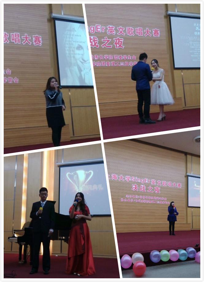 2014年12月15日晚6:30,Beat365唯一官方网站第一届Sing-E-r英文歌曲大赛决赛在校图书馆报告厅成功举行。钱伟长学院直属党总支副书记徐晓夏、社区学院党委副书记陈伟平、校团委副书记李银、社区学院团委书记石婵娟、钱伟长学院直属党支总委员阮杜娟等老师出席比赛。比赛邀请外国语学院肖福寿教授、万华教授、音乐专业教师张弛和校园十大歌手担任评委。