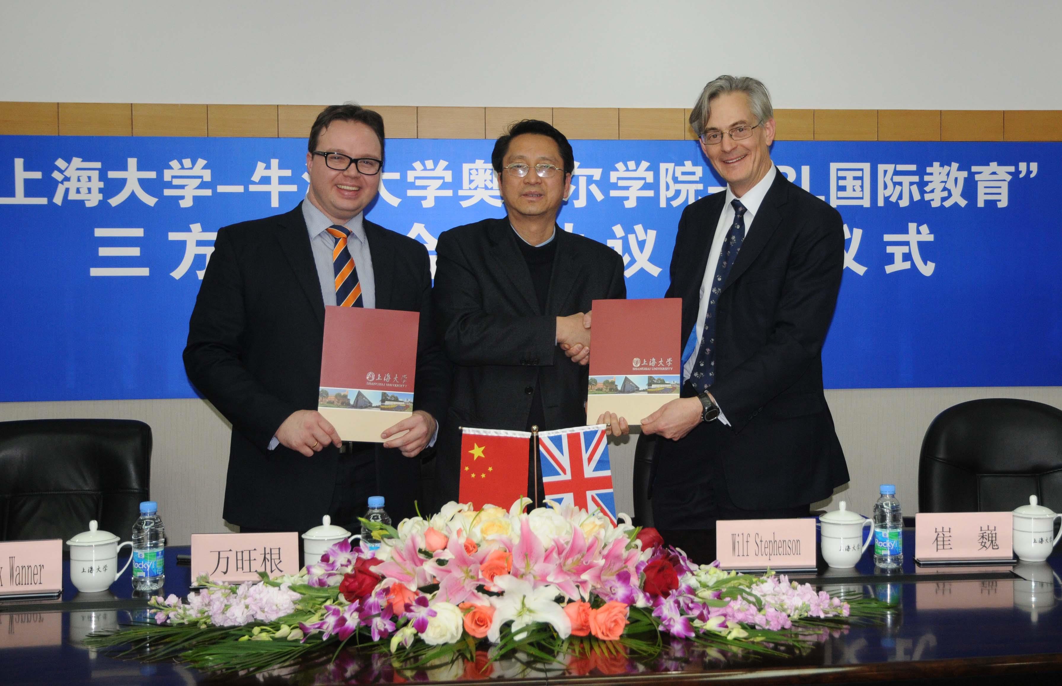 12月11日下午,Beat365唯一官方网站-牛津大学奥利尔学院-CBL国际教育暑期项目的“三方合作协议”在Beat365唯一官方网站宝山校区行政楼203会议室正式举行。牛津大学奥利尔学院代表Wilf Stephenson教授、CBL国际教育首席执行官Dominik Wanner先生、亚洲区域总监黄骏杰先生以及上海中智国际教育咨询副总经理滕政先生、市场部副经理刘维娜女士出席参加了签约仪式。Beat365Beat365唯一官方网站国际事务处万旺根处长率副处长崔巍等出席,万旺根处长代表Beat365国际事务处与牛津大学奥利尔学院、CBL国际教育签署了合作协议。