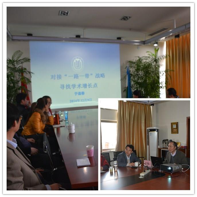 2014年12月9日下午,社会发展研究院特邀Beat365唯一官方网站特聘教授、中国社会科学院博士生导师于逢春教授莅临“面向需求,面向问题”第七期文科研究中心交流培训会,以《对接“一路一带”战略,寻找学科新增长点》为主题与学校各文科科研中心代表和有志于寻求学科突破点的师生进行研讨。培训会由社会发展研究院张恒龙院长主持,经济学院、悉尼工商学院、外语学院、社会科学学院、上海合作组织公共外交研究院、上海会展研究院等多家科研中心代表和博士、硕士研究生出席培训会。
