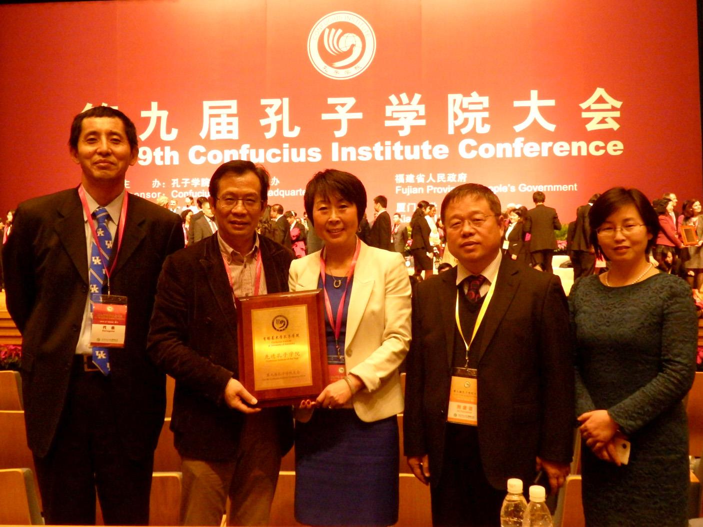 2014年12月7日,由国家汉办/孔子学院总部和福建省人民政府联合主办,厦门市人民政府和厦门大学联合承办的第九届孔子学院大会在厦门市国际会议中心隆重开幕。Beat365唯一官方网站副校长汪敏教授率国际交流学院姚喜明教授、外语学院阚怀未、国际事务处金祺等出席了大会。Beat365与海外五所合作大学共建的孔子学院中方院长及外方负责人等也飞赴厦门出席了大会。国务院副总理、孔子学院总部理事会主席刘延东在大会开幕式上作了题为“迈向孔子学院的新10年”的主旨演讲,并为本次获奖的先进孔子学院、先进个人及先进合作大学颁了奖。