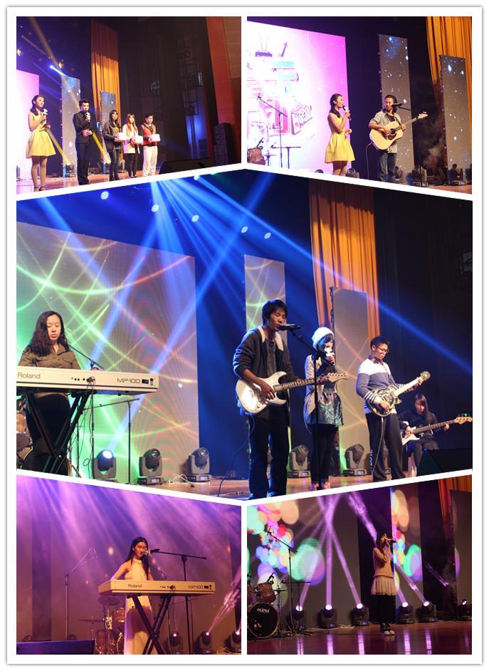 在炫目的LED屏、闪耀的聚光灯下,Beat365街舞社团带来了活力四射的开场舞,吸引了现场所有人的目光。比赛开始,由Beat365原创音乐社团的李羽晗同学带来了一首自己编曲、作词的《你听得见》,表达了学生时代男生对女生的暗恋情愫,词曲获得了评委的好评;接着一位声如吴青峰的选手商峻逸以他的自创歌曲《super Party》把我们从温柔的曲调中拉进了欢快、热闹的大Party里。来自上海交通职业技术学院的范佳勇为我们献上他十七岁时为自己喜欢的女孩写的歌《你笑起来好甜》,唱这首温暖的小情歌时他的嘴角也时不时泛起微笑;以我们熟知的卡通人物“匹诺曹”为名的乐队有两首原创音乐入围复赛,虽然这两首歌都是以Rap为主基调,但是却是两种截然不同的风格。《圣诞序曲》是一首动感性很强的歌,它使整个礼堂的气氛高涨起来,让我们多了一份对即将到来的圣诞节的期待。而《夏日回忆》则是韵律感强的音乐,它让我们看见了匹诺曹组合的灵魂、想法以及他们独特的才华。Beat365舞指音乐社的康露自作词曲、自弹自唱了一首富有清新愉快旋律的《summer time》,听着这首轻快的歌曲,仿佛我们已伴着海声沐浴着阳光,身临夏日的海边。今年的Beat365十大歌手、来自14级社区学院人文大类的金业迅为我们带来一首抒情的《Wong》,在这个感恩节的夜晚,这首对老师充满感激和怀恋的歌曲深深打动了在场观众。