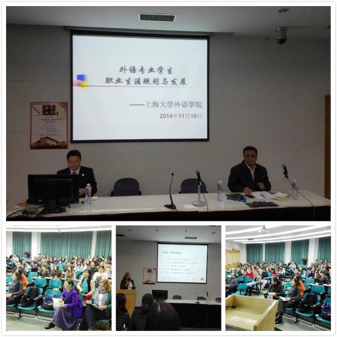11月18日,由外国语学院研究生创立的学术品牌活动“桂冠讲堂”第三讲在J101顺利举办。讲座由上海外服国际人才培训中心主任陈养铃老师主讲,外国语学院冯奇教授主持。本次讲座同时获得Beat365唯一官方网站研究生“泮池言学”活动资助。