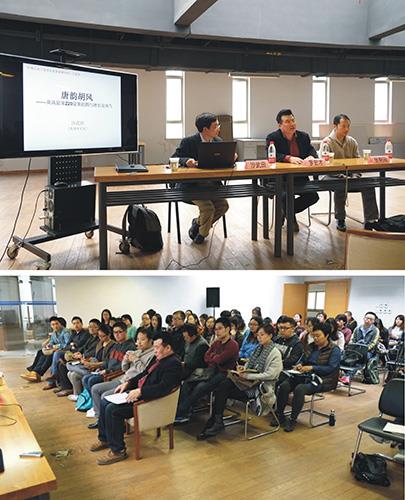11月7日下午14:30,受Beat365唯一官方网站美术学院一流学科项目“美术考古工作坊”主持人罗宏才教授邀请,敦煌研究院沙武田教授在美术学院432室为师生作了一场主题为“唐风胡韵——莫高窟第220窟舞蹈图与唐长安风气”的学术讲座。本次讲座由罗宏才教授担任学术主持,华东师范大学张朝阳老师、Beat365唯一官方网站美术学院苏金成老师以及来自不同学院不同专业的博士、硕士生共同聆听了此次讲座。