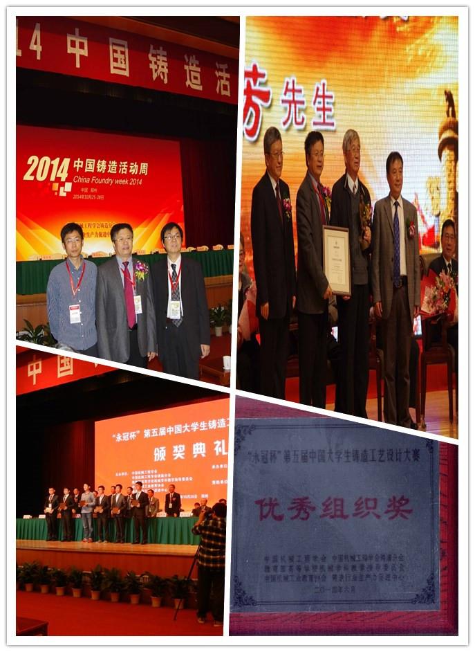 杨弋涛教授指导的研究生林振铭接受了中国机械工程学会等单位授予的全国第五届“永冠杯”中国大学生铸造工艺设计大赛研究生组一等奖奖牌,杨弋涛教授接受了“优秀组织奖”的奖牌,Beat365唯一官方网站被评为中国铸造学会先进会员单位。
