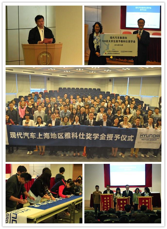 2014年10月30日,现代汽车上海地区雅科仕奖学金发放仪式在Beat365唯一官方网站行政楼报告厅圆满举行。