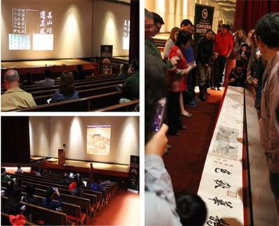 2014年10月18日10:00a.m.-3:30p.m.,第一次培训在列克星顿马公园South Theatre举行。本次培训主要介绍中国艺术,由肯塔基大学孔子学院美方院长修华静博士作了题为《通过中国艺术了解中国文化与历史》及《中国三大经典艺术—诗书画》的讲座。来自当地中小学的14位社会科学课程教师及肯塔基大学孔子学院教师30余名参加了本次培训。