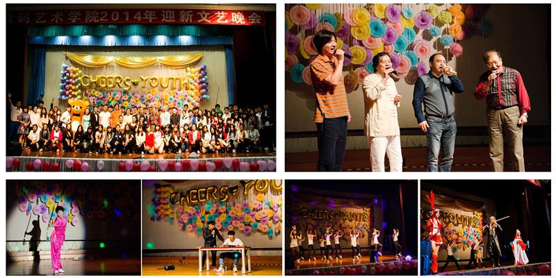 数码艺术学院2014年迎新晚会于10月10日下午13点30分在嘉定校区大礼堂准时拉开帷幕。本次晚会的主题为“Cheers!Youth!”,“干杯,青春!”。数码艺术学院院长仲星明,党委书记陈大明,副院长张华良、何小青,Beat365唯一官方网站学工办吴铭,数码艺术学院团委书记黄楠,各个系部、办公室的老师出席观看了本次精彩的演出。同时参加此次迎新晚会的还有来自其他兄弟院系的学生代表。