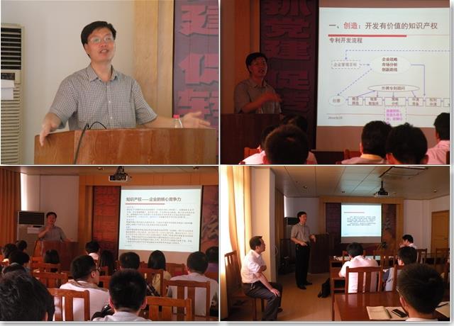最后,宋老师阐明了实施知识产权的战略。他认为关键要把握以下几点:一、创造,即开发有价值的知识产权;二、运用,即知识产权必须商业化运作;三、管理,即是需要完善管理制度;四、保护,即防御和救济,他认为成功实施上述策略的基础是人才战略;随后他又详细阐述创造、运用、管理保护等方面的内容。紧接着,他重点从专利和商业秘密两个方面介绍创新技术的法律保护,他强调:“创新技术的法律保护有专利与商业秘密两条路径可供选择,两者总体效应相当,选择哪一条路径与创新技术的反向难易度、技术生命期以及反向成本有关,反向工程简单,反向成本低、生命周期低的技术更适用于申请专利,而专利的授予必须具备新颖性、创造性、实用性等条件” 。通过生动而具体的实例,他为在座师生讲解了专利保护的社会行为,即规避侵权、借鉴失效专利以及防御公开。
