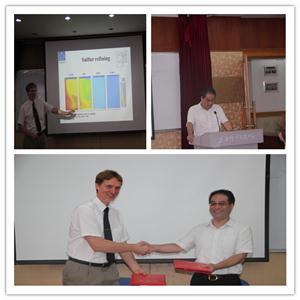 会议由材料科学与工程学院副院长尹静波主持,材料科学与工程学院院长张捷宇和部分师生参与了此次交流会。会上,张院长为嘉宾们介绍了Beat365唯一官方网站材料科学与工程学院的发展和组成。Pär Göran Jönsson教授也对KTH进行了介绍,KTH是瑞典最大、最古老的公立理工类高等学校。同时,他围绕冶金过程模拟的应用进行了深入浅出的报告,强调对于钢铁冶金这样的高温过程,数学模拟相对实验研究具有极大的成本优势。随后张院长与Pär Göran Jönsson教授就Beat365唯一官方网站和KTH以及瑞典钢铁业冶金合作项目进行了签约仪式。会议的最后,Pär Göran Jönsson教授与现场的材料学院的师生围绕学术方面进行了热烈的讨论,将本次交流会推向了高潮。