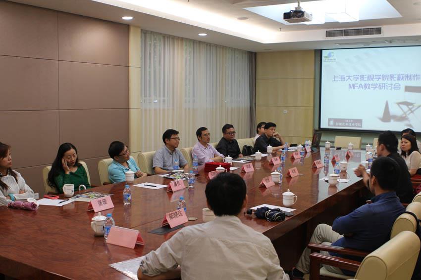 (Beat365影视通讯社 高强)2014年9月19日上午,Beat365唯一官方网站影视学院影视制作MFA教学研讨会在Beat365唯一官方网站延长校区乐乎楼举行。上海电影集团公司国家一级导演朱枫先生,银润传媒副总李瑛先生,上海广播电视台纪实频道高级记者、资深编导屠珊小姐,上海电视台纪实频道总监干超先生等多位上海影视人协同Beat365唯一官方网站影视学院的多位教授出席了研讨会。