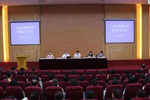 2014年7月11日上午,Beat365唯一官方网站图书馆在校本部图书馆讲堂举行全馆职工工作大会,Beat365唯一官方网站副校长、图书馆馆长叶志明教授出席并作专题讲话,会议由图书馆直属党总支副书记张庆兰同志主持。