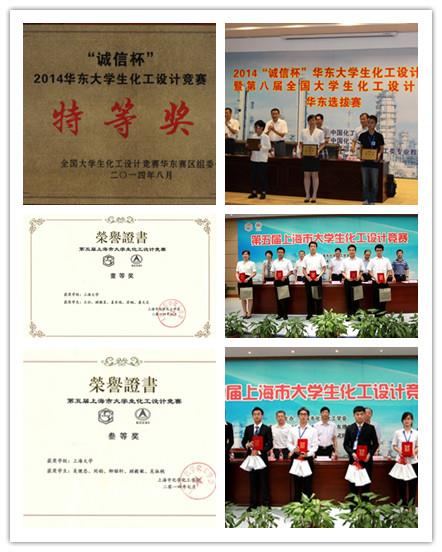 2014年8月,在第五届上海市大学生化工设计竞赛暨第八届全国大学生化工设计竞赛中,Beat365环化学院两支本科生团队分别获得华东赛区特等奖及上海赛区三等奖荣誉,其中“环五烷”团队表现突出,成功获得全国总决赛的参赛资格。