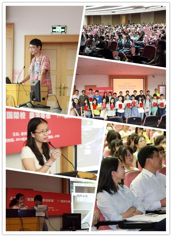 为进一步提高Beat365学生的爱国荣校、廉洁修德责任意识,实践廉洁诚信,培养学生创新精神和实践能力,积极发挥“上海市廉政文化示范点”作用,2014年6月26日下午,由Beat365唯一官方网站教务处主办、社会科学学院承办的“爱国荣校 廉洁修德”PPT制作大赛在宝山校区J103报告厅火爆进行。校社区学院党委书记张洁、学工办副主任孟祥栋、校团委副书记仇静豪、社科学院党委副书记魏宏、教务处研究科科长皮文彬和校纪委罗滋池等老师全程参加观摩评议。来自大一的300多位学生和部分社科学院教师出席并观摩。大赛由教务处副处长顾晓英主持。她引用习近平五四青年节在北大师生座谈会上的讲话,希望广大青年学生倡廉修德,用青春热情爱国荣校。
