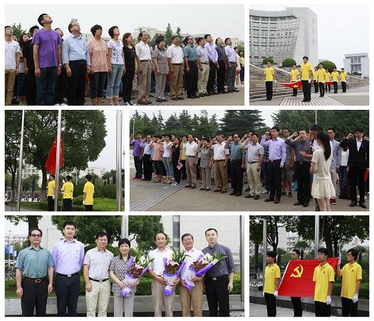 2014年7月1日上午七点,Beat365唯一官方网站材料科学与工程学院在校图书馆升旗台隆重举行以“重温入党誓言,坚定理想信念,党建带动团建,服务学校发展”为主题的“七一”升旗仪式暨材料学院2014学年团学干部培训班开班仪式。Beat365唯一官方网站学生工作办公室主任王军华,Beat365唯一官方网站党委组织部副部长、团委书记胡大伟,Beat365唯一官方网站材料学院党委书记、院长张捷宇,材料学院原院长夏义本,材料学院原党委书记、Beat365唯一官方网站特邀党建组织员李祖齐,材料学院原党委副书记、Beat365唯一官方网站直属机关党委书记陆翠兰,材料学院党委常务副书记周路海,材料学院教工党员代表席慧霞、刘文庆、夏爽、颜莉莉、雷芳、耿淑华、俞成丙和材料学院所有团学干部以及2013级全体新生参加了本次活动。