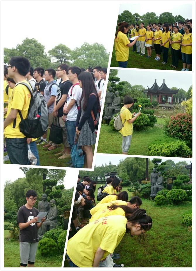 最后,学生代表向钱伟长老校长和夫人的墓碑敬献鲜花,全体师生三鞠躬,表达了钱伟长学院师生对钱伟长老校长无尽的缅怀与深深的敬意。
