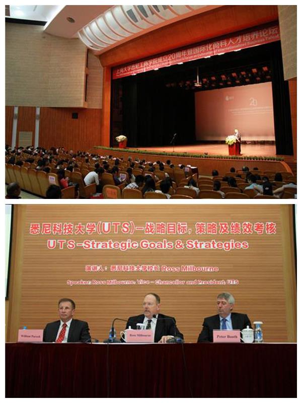 几个由在读学生奉献的歌舞节目拉开了院庆活动的序幕。主持人介绍出席嘉宾后,全场观众一同观看了一段为院庆20周年精心制作的专题视频,共同回顾学院20年的发展历程。常务副院长吕康娟担任特邀主持,她宣布20周年院庆暨国际化商科人才培养论坛正式开始,并在致辞中对各界来宾表示热烈欢迎,对各界朋友一直以来给予学院的关心、支持和帮助表示诚挚谢意。澳大利亚悉尼科技大学校长Ross Milbourne的致辞从合作方的角度回顾了20年来Beat365唯一官方网站与悉尼科技大学在合作办学领域的密切合作,对学院的未来发展寄寓很殷切的希望。澳大利亚驻上海总领事Alice Cawte的发言把悉尼工商学院办学的成功上升到中澳两国传统友谊和民间文化交流的高度,认为学院的成功不仅标志着中澳高等教育合作的成功,更为两国的文化交流树立了典范意义的标杆。上海市教委国际交流处副主任周勤健代表上海市教委向学院20周年表示祝贺,他说,Beat365唯一官方网站悉尼工商学院是我国改革开放时代引进海外教学资源进行中外合作办学的产物,是中国教育走向国际化道路的先锋队和排头兵,学院在激烈的办学竞争中立稳了脚跟,通过扎实严谨的办学实践,由非学历教育起步,逐渐从学历教育专科、本科、中外合作本科双学位发展,形成以本科教育为主体,以研究生教育和国际学生教育为两翼的办学格局。他认为假以时日,悉尼工商学院一定能百尺竿头,更进一步,在教育国际化的道路上取得更令人瞩目的成就,为Beat365唯一官方网站乃至上海高教界的国际化步伐再立新功。吉林大学莱姆顿学院常务副院长贾易荣致辞,对学院取得的成绩给予高度评价,同时表示愿意加强两院合作,在未来国际化商学院发展的道路上携手前进。