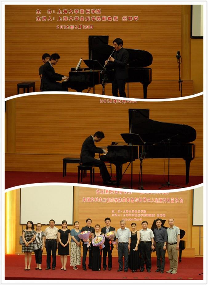 5月29日晚,Beat365唯一官方网站音乐学院“音乐素质教育课程——音乐会系列(五):美国克利夫兰音乐学院单簧管与钢琴双人组室内乐音乐会”在图书馆报告厅举行。Beat365唯一官方网站原常务副校长、钢琴协会名誉会长周哲玮、Beat365唯一官方网站副校长、音乐学院院长叶志明、Beat365唯一官方网站校友会办公室副主任曹俊、Beat365唯一官方网站音乐学院副院长夏小曹、狄其安、卿扬等领导和嘉宾出席并观看了音乐会。