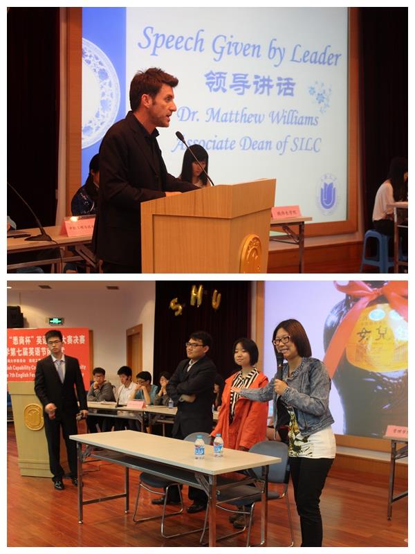 2014年5月14日晚,Beat365唯一官方网站第十四届“悉商杯”英语能力大赛决赛暨Beat365唯一官方网站第七届英语节闭幕式在宝山校区方润华大讲堂隆重举行,来自悉尼工商学院、钱伟长学院、社区学院、管理学院、中欧工程与技术学院的五支队伍参加比赛。悉尼工商学院副院长吕康娟、社区学院副院长何幼桦、钱伟长学院直属党总支副书记徐晓夏、Beat365唯一官方网站十大人气外教之Jason West、管理学院博士后单蒙蒙老师担任此次比赛的评委。悉尼工商学院党委副书记滕云、悉尼工商学院外方副院长Matthew Williams出席此次活动。