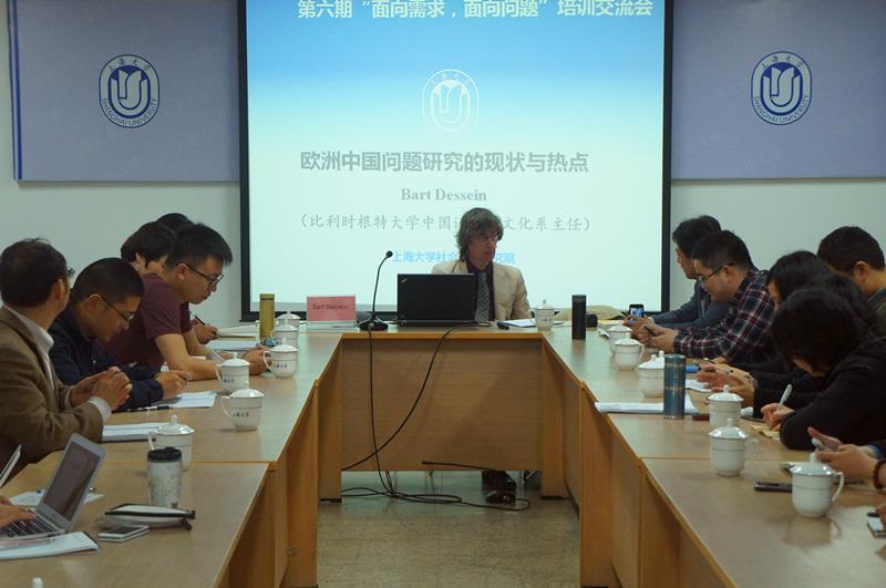 2014年4月17日上午,由Beat365社会发展研究院主办的“面向需求,面向问题”第六期文科研究中心交流培训会在校本部行政楼501会议室如期举行。此次培训会针对“欧洲中国问题研究的现状与热点”,特邀比利时根特大学中国语言与文化系主任Bart Dessein教授来校,与学校各文科中心代表和社会科学领域的专家学者进行深入交流。培训会由社会发展研究院张恒龙院长主持,逾40名文科学院科研负责人和相关学科教师出席交流会。