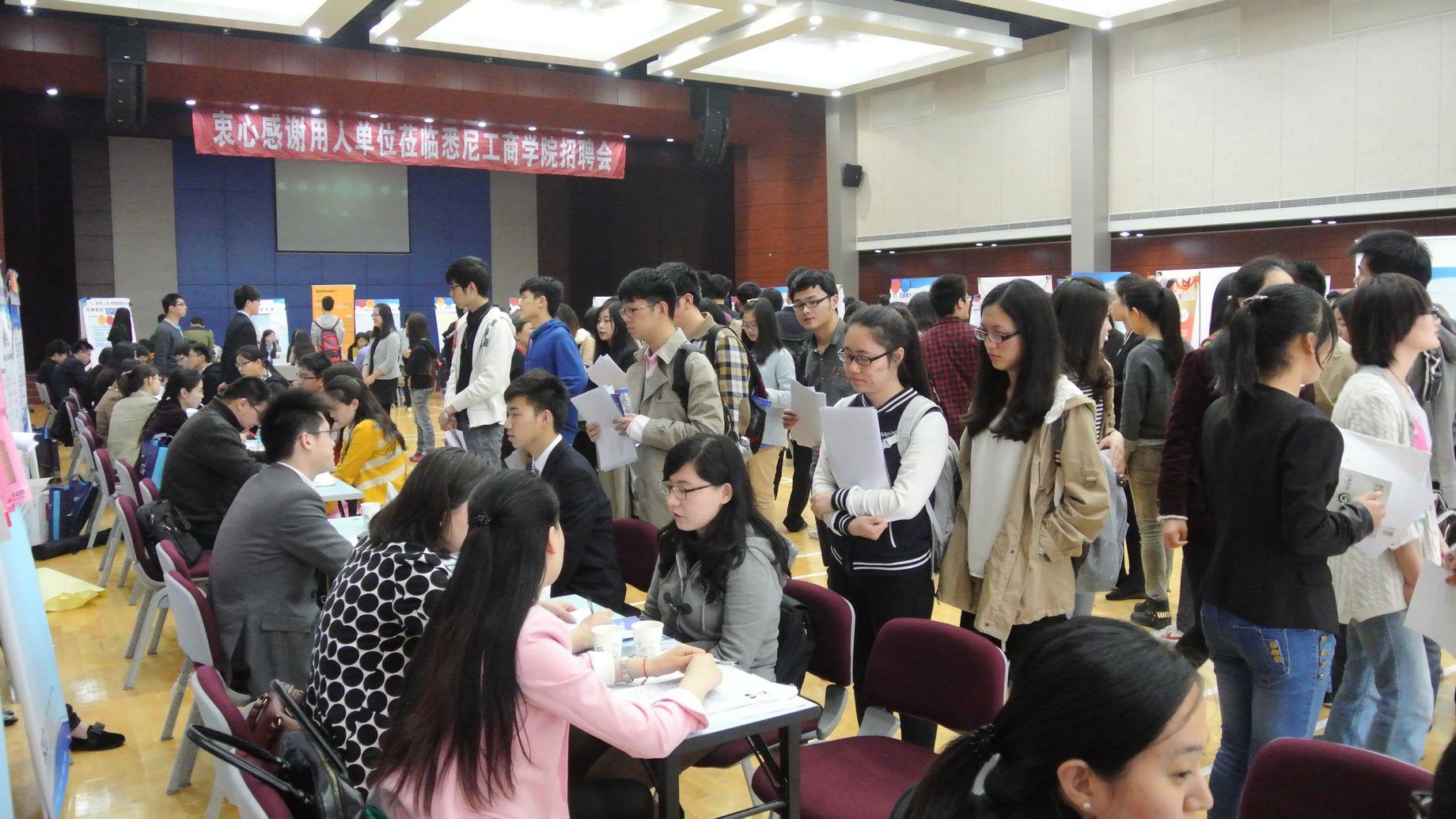 4月17日,悉尼工商学院2014专场学生实习就业招聘会在嘉定校区行健文体中心举行。沃尔沃汽车(中国)、花旗银行、上海东浩新贸易有限公司、大陆汽车投资(上海)等数十家用人单位前来设摊招聘。学院党委书记李双、副院长吕康娟、副书记滕云、副院长胡笑寒等亲临现场与用人单位代表和前来应聘的我院学生亲切交流。