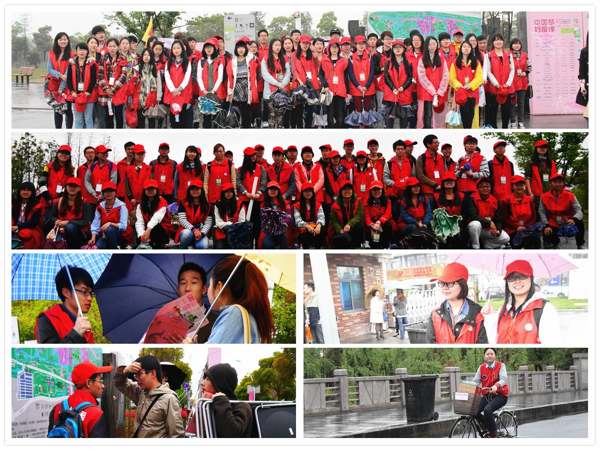 2014年4月12日、13日,在经过清明节高强度的志愿服务后,C队与D队的志愿者们经过几天的休整迫不及待地迎来了上岗的日子。虽然这两天早上春雨连绵,但是志愿者们依然准时地出现在北门集合,一同热情饱满地前往顾村公园。到达顾村公园后,志愿者们冒雨进行了早上的晨会,随后穿好红马甲,带好小红帽,挂好志愿者证,伴随着淅淅沥沥地春雨到达自己的岗位。