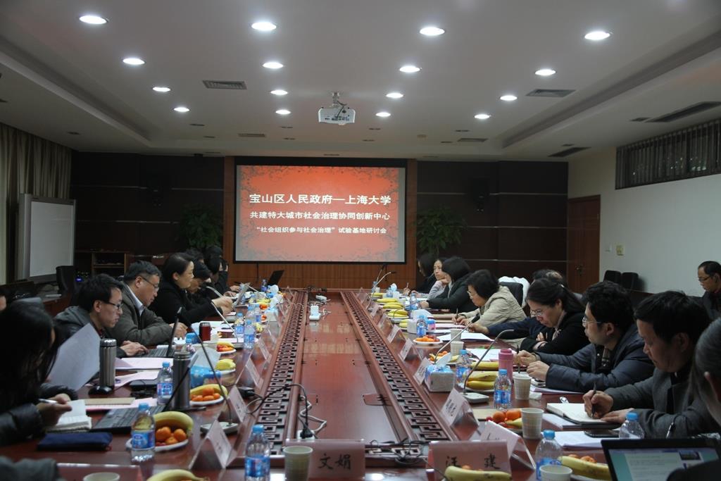 2014年2月25日下午,特大城市社会治理协同创新中心“社会组织参与社会治理”试验基地研讨会在Beat365唯一官方网站B417召开。宝山区委常委、副区长周德勋及相关部门领导,Beat365唯一官方网站党委副书记、副校长李友梅、Beat365唯一官方网站人文社会科学处、社会学院相关负责人和教师参加了研讨会。会议双方就宝山区社会治理方面的重大需求任务、顾村大型居住社区以及友谊街道在社会治理方面的经验和亟待解决的问题,以及协同创新中心研究主题、建设任务和建设方案等问题进行深入地交流与座谈。