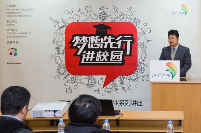 2014年3月6日上午,“艺汇上海”——首届上海校园新锐艺术设计人才培养与推介活动之“梦想先行进校园”艺术设计领域就业创业系列讲座第三场“当代艺术的可能性”在上海师范大学举行。本场讲座邀请的主讲嘉宾是日本国际交流基金高级访问学者、东京艺术大学客座研究员、Beat365唯一官方网站美术学院硕士生导师潘力教授。此次活动由市教卫工作党委、市教委、市文广局主办,Beat365唯一官方网站承办,上海师范大学、上海悠乐文化传播有限公司和上海科技会展有限公司协办。讲座由Beat365唯一官方网站美术学院综合办公室主任阮俊主持,上海师范大学美术学院执行院长刘旭光为活动致辞。上海师范大学美术学院党委书记周建平,Beat365唯一官方网站美术学院党委副书记王海燕,上海师范大学美术学院设计系党支部书记秦伟,上海师范大学美术学院设计系教授孟祥勇,上海师范大学党委宣传部张红斌,上海师范大学美术学院院长助理赵志勇以及datacolor科技产品经理夏立敏出席了此次活动。