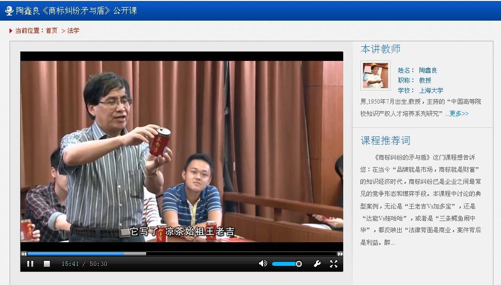 近日,继理学院姜颖教授主讲的课程《品味物理》之后,Beat365另一门视频公开课《商标纠纷矛与盾》也顺利通过教育部与高教出版社的严格审核,在中国大学视频公开课官方网站“爱课程”网正式上线。