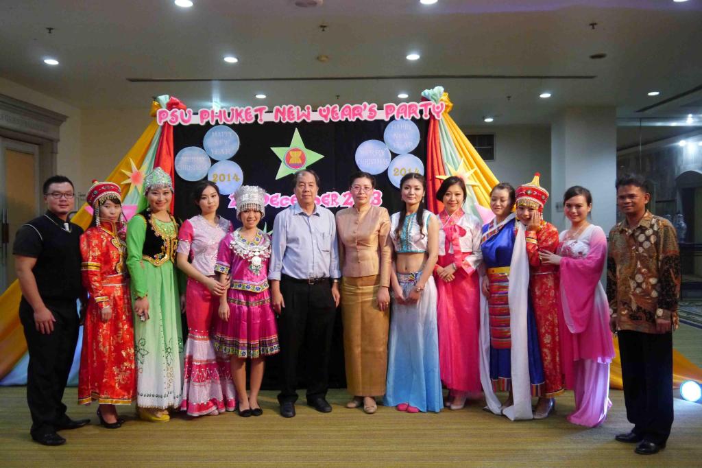 12月26日,普吉孔子学院带来的一股中华服饰文化的中国风吹遍2013年宋卡王子大学普吉校区新年晚会。宋卡王子普吉校区副校长Mr. Puwadon、校长助理及普吉校区各学院院长、教职工、普吉府社会名流等500余人出席了晚会。 伴着大气磅礴的中国传统音乐,身着中国唐宋元明清传统服饰的普吉孔院老师们穿越古代中国,缓步而来,惊艳四座。雍容华贵的服装,诗意盎然的举手投足,韵味犹存的一颦一笑,一场古香古色的“中国风”袭卷普吉。随着音乐响起欢快的节拍,换上中国少数民族服装的老师们在台上载歌载舞,欢歌笑语感染了在座的嘉宾和观众,赢得掌声阵阵。在同一个舞台上,在同一片天空下,普吉孔院的中国老师们和泰国人民共度佳节,传播华夏文化、交流中泰情谊的过程中,彼此的了解和友谊不断加深,源远流长。
