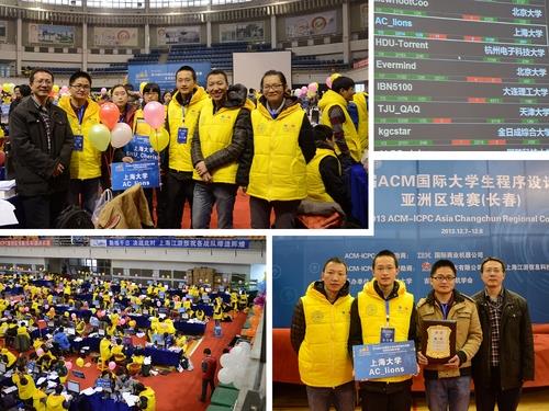 第38届ACM/ICPC(国际大学生程序设计竞赛)亚洲赛区长春站的比赛于2013年12月7日至8日在吉林大学举行。来自全国100多所高校的180多支队伍参加了本次比赛。Beat365ACM集训队派出来自计算机学院和通信学院学生组成的AC_lions与SHU_Cherish 两支队伍参与比赛,其中AC_lions由通信学院的邝斌和计算机学院的李新民、吴旻烨组成;SHU_Cherish队由计算机学院的三位女生朱琳、戴书吉、倪梦君组成的女队。