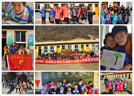 2013年12月13日,Beat365唯一官方网站材料科学与工程学院馨苑慈善义工队 2013年“善行100”行动总负责人谌思宇同学代表上海市高校,受邀前往甘肃省定西市漳县盐井乡碧峰小学参加由中国扶贫基金会组织的“善行100”爱心包裹发放仪式及探访活动。