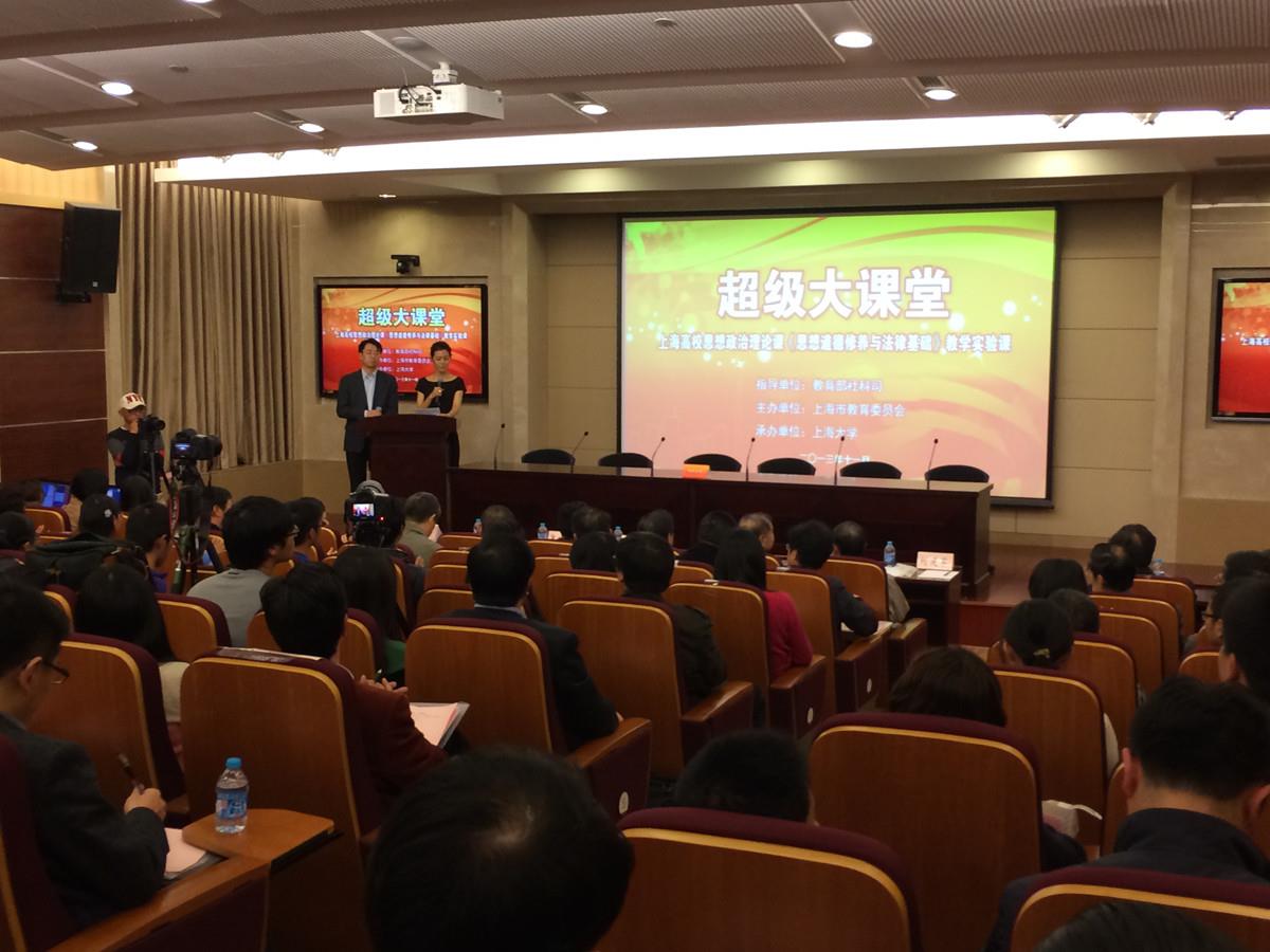 11月16日晚,由上海市教育委员会主办、上海高校思想政治理论课教学协作组具体组织的的第一期“超级大课堂——上海高校思想政治理论课教学实验课《思想道德修养与法律基础》”(简称“超级大课堂”)在Beat365唯一官方网站宝山校区乐乎新楼二号楼学海厅举行。