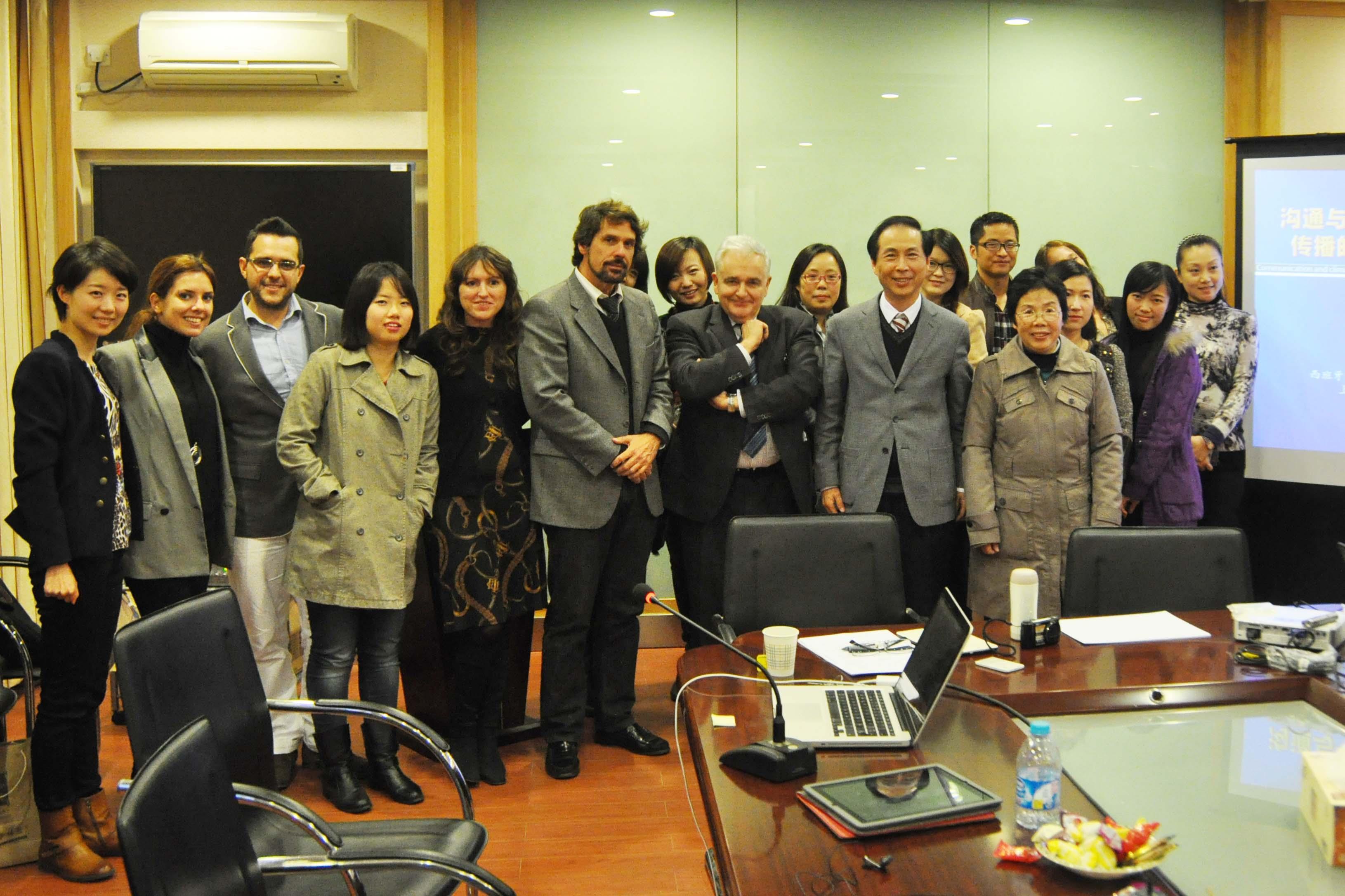研讨会中,老师和同学就学者们的相关问题进行了广泛地交流,会议最后吴信训教授作总结发言,吴教授指出,本次研讨会具有很重要的意义,西班牙学者的研究成果从不同角度探讨了气候传播不单纯是一个自然问题,而是一个政治性、社会性话题,大众传媒在气候传播中扮演的角色仍然是每一个传媒人深思的问题。吴教授表示关于气候传播中国学者也高度关注,媒体和政府也给予重视,希望本次研讨会为两国学者开展协作研究提供契机,为今后共同开展相关研究做一些探讨。