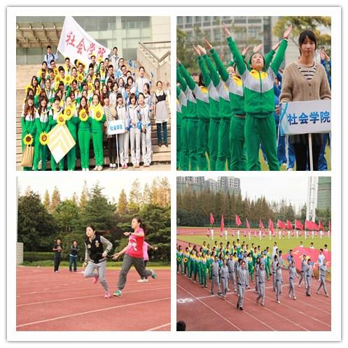 下午的秋风带来丝丝凉意,但是丝毫无法影响体育场上洋溢的热情,随着校党委书记于信汇教授宣布本届运动会开幕,来自全校各个团体的方阵一一亮相展示。社会学院师生迈着沉稳矫健的步伐走过主席台。社院的学子们身着黄色和绿色的运动服,代表着春日新芽般的活力和青春的斗志,在众多的院系中显得分外整齐鲜明。“驰骋赛场,英姿飒爽,社院辉煌,耀我荣光”与“社院社院,我是社院,再说一遍,我是社院”的响亮口号前呼后应,无不体现出社会学院非凡的凝聚力和激昂的斗志。最令人难忘的是变化成社院院徽的方阵队列。社院学子昂首挺胸、整齐排列,无不体现了社会学院学子们的社会学想象力和团结精神,赢得了现场观众的一片掌声和喝彩。