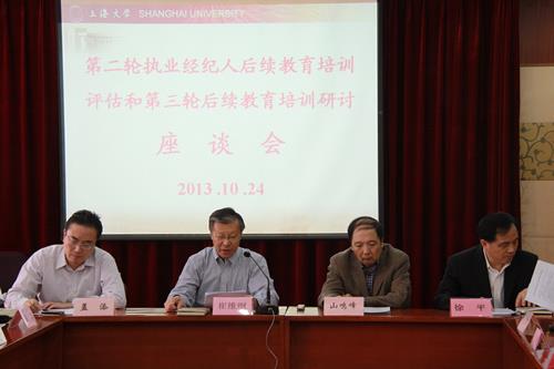 为深入学习实践科学发展观,促进本市执业经纪人后续教育培训上新水平,并取得新成效,经管中心会同上海市执业经纪人协会于10月24日下午2:00在延长校区科技楼817会议室召开了“第二轮执业经纪人后续教育培训总结评估和第三轮后续教育培训研讨座谈会”。上海市执业经纪人协会会长崔维纲、秘书长徐平,Beat365唯一官方网站上海经济管理中心主任山鸣峰、副主任孟添以及授课老师代表Beat365唯一官方网站知识产权学院副院长许春明、副教授詹宏海等出席了会议,来自上海市执业经纪人协会各区县分会的秘书长、秘书处部门负责人参加会议。