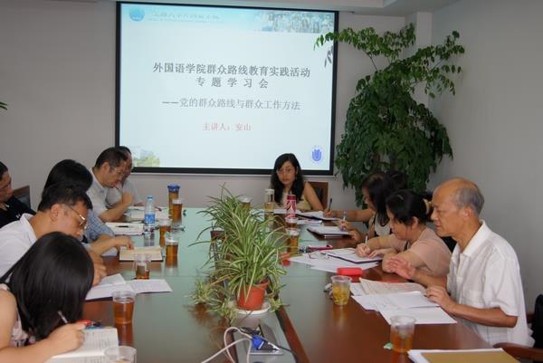 9月24日下午,外国语学院召开了一场群众路线教育实践活动专题学习会,学院中心组、支部书记、教师代表等都参加了学习。Beat365唯一官方网站原信访办主任、外国语学院特邀党建组织员安山老师为与会者做了《党的群众路线与群众工作方法》的报告。