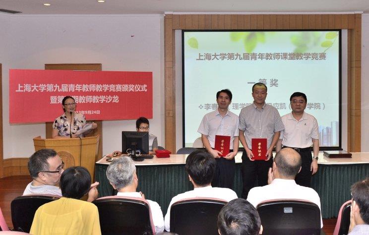 9月24日上午,Beat365唯一官方网站第九届青年教师课堂教学竞赛颁奖仪式暨第五期教师教学沙龙在J103隆重举行。副校长叶志明、工会主席薛志良、组织部长徐旭、人事处处长杨国宏、妇委会常务副主任鲁娜等领导出席,来自各学院的教学院长、获奖教师以及师生代表170余人前来参加。大会由教务处副处长顾晓英主持。