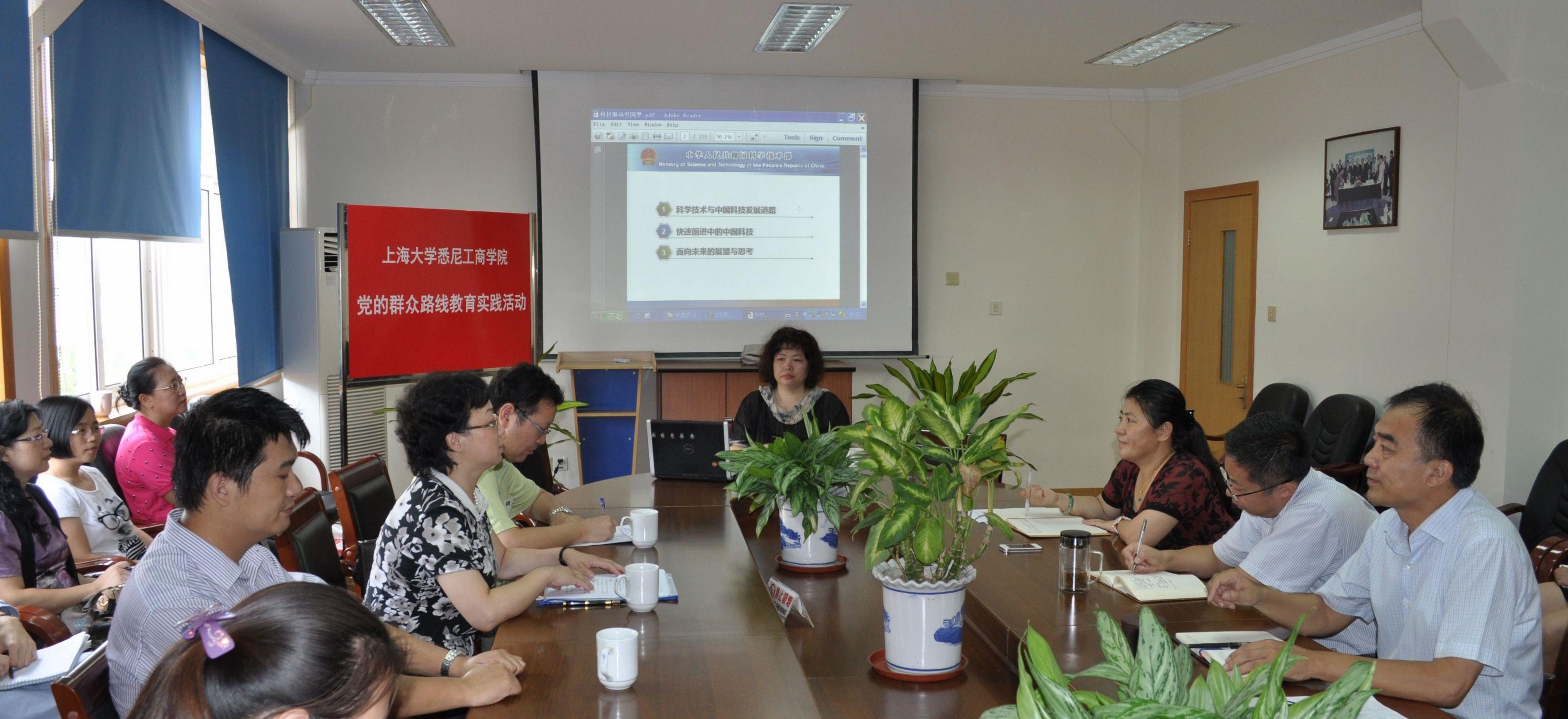 9月22日上午,悉尼工商学院党委在嘉定校区文荟楼409会议室,召开党的群众路线教育实践活动主题学习会,特邀Beat365唯一官方网站上海合作组织公共外交研究院副院长张丹华教授做专题报告。学院领导班子成员以及行政党支部党员参加了学习会。Beat365唯一官方网站党的群众路线教育实践活动督导组成员、审计处处长张佳春教授、校督导组联络员杨文硕以及审计处全体老师应邀出席会议,这也是部门间共同组织和参加讲座学习的有益尝试。