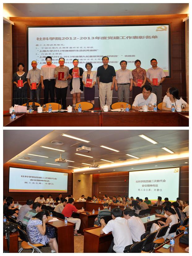会上,首先由副院长李梁向所有参会教职工介绍了新近加入社科学院的5位教职员工。接着,院工会主席许静仪向参会人员传达了社科学院四届二次教代会的会议精神。魏宏同志介绍了社科学院2012-2013年度党建研究工作情况,并宣读了获奖奖项与获奖人员名单。