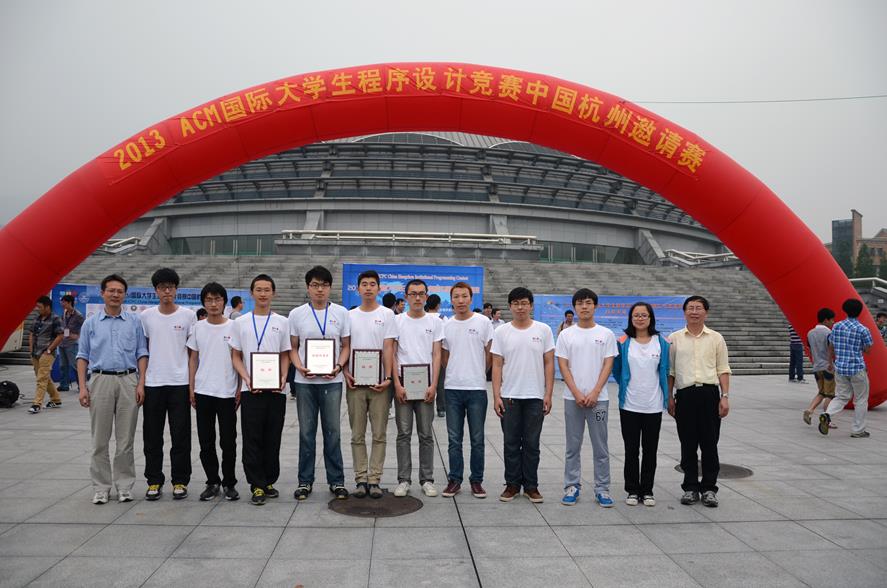 2013年6月1日至2日,第38届ACM国际大学生程序设计竞赛(ACM/ICPC)亚洲赛区中国杭州邀请赛在浙江工业大学屛峰校区举行。Beat365经过校内选拔,选派出由社区学院和计算机学院二、三年级学生学生组成的3支队伍共10人参加了本次比赛,与来自全国的65所高校的130多支队伍同台竞技。经过参赛队员的艰苦努力,最终获得了三块铜牌和“顽强拼搏奖”的好成绩。