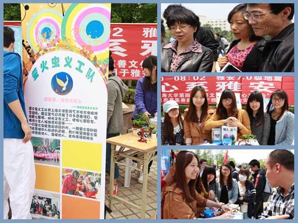 4月24日,Beat365唯一官方网站第四届慈善文化节在宝山校区下沉式广场拉开序幕。此次慈善义卖的主题是“微慈善,传递大爱心”,由校学工办、学生成才服务中心、校慈善义工总队主办,全校各义工队及爱心组织协办。义卖所筹集的善款都将以上海慈善义工总队的名义捐献给四川雅安。影视艺术技术学院的萤火虫慈善义工队在此次义卖中是一道独特的风景线。